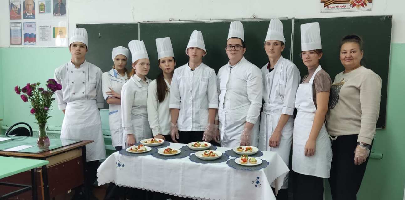 26.09.2025 участниками практических мероприятий, профессиональных проб, в рамках Федерального проекта ранней профориентации «Билет в будущее» стали ученики 9 класса МБОУ СОШ №2 пр. Беково. Ребята прошли профпробу по профессии «Повар». Профессиональная проба была проведена и подготовлена преподавателем Сидоровой Л.Н. и студентами техникума. В мастерской «Поварское дело» каждый школьник под руководством наставника Сидоровой Л.Н. и студентов собрал и оформил закуску из песочного полуфабриката – тарталетки фаршированные. Изготовление изделий из песочного полуфабриката является необходимой компетенцией повара при приготовлении холодных закусок. В завершении профессиональной пробы все учащиеся продегустировали готовые изделия, которые приготовили своими руками.